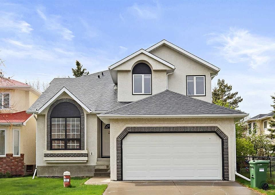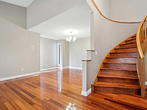 Nestled on a quiet street with a park in the backyard, this property has over 3,400 sq/ft of developed living space, including 1,334 sq/ft on the main level. This incredible home is designed for entertaining and comfortable family living. The main level features tile and hardwood flooring throughout the front living room and formal dining area. The family room has vaulted ceilings, a fireplace, and built-in bookshelves. The kitchen has white cabinetry, granite counters, an island, and stainless steel appliances. A den on the main floor allows for some flexibility. Ascend the graceful hardwood spiral staircase to the upper floor, where three generous bedrooms, all with hardwood flooring, await, including a master suite. The master ensuite features a jetted tub, a separate shower, and a walk-in closet. The finished basement has a rec/games room, a second fireplace, a wet bar, and a fourth bedroom. Recent updates include the replacement of all Poly B piping in 2025, many new windows, and the installation of a high-efficiency furnace in 2019. The backyard is ideal for children, with a park directly behind the property. This home offers an incredible lifestyle in a desirable location. Schedule a showing today.