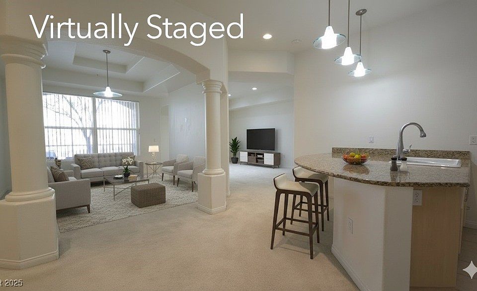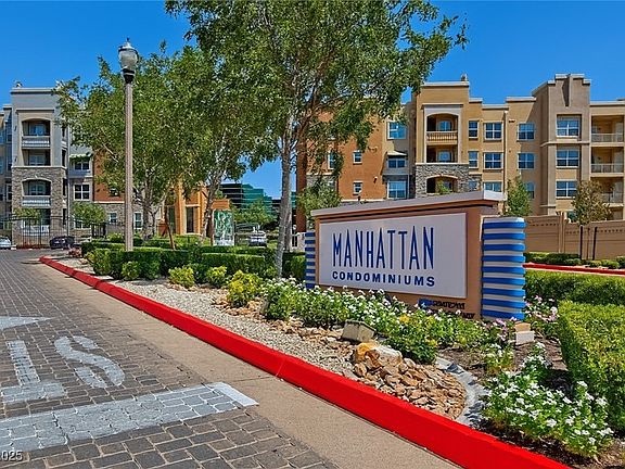 One of the largest models in the complex, this spacious 3-bedroom condo at The Fabulous Manhattan on South Las Vegas Boulevard features soaring 10-foot ceilings, an open floor plan, and a formal dining room that can double as a game room or office. All bedrooms include walk-in closets, both bathrooms offer raised vanities, and the large walk-in laundry room includes a pantry. The kitchen boasts ample counter space and bar seating, perfect for entertaining. Located in a guard-gated community with extensive amenities, this unit also includes two underground parking spaces (#1 & #27). Resort-style amenities set around a "Central Park". Residents enjoy access to two swimming pools, spas, a jacuzzi, BBQ area, cardio-only room, yoga studio, weight room, internet cafe, tech and conference center, media room, clubhouse, basketball and tennis courts, and beautifully landscaping creating a vibrant and active lifestyle in the heart of Las Vegas.