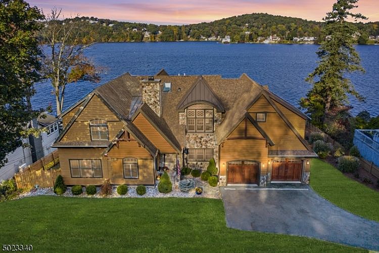 This gorgeous Lake Mohawk home has everything you could need! Lakefront living at its finest. Front row seats for the fireworks here, along with boat dock, original boathouse, and backyard beach. You will be impressed from the moment you enter this home. Stunning, original Lake Mohawk Crane log room, gourmet kitchen, formal dining room, open and light great room, sunroom, luxury master suite, 3 additional large bedrooms and office. The luxury custom finished basement was designed for entertaining, and also includes a gym and full bath. Tons of storage in the custom built-ins found throughout the home! A two car attached garage and additional parking. Location is perfect - close to the Lake Mohawk boardwalk and town, yet set back from the road and very quiet. Walk to everything, including the bus to NYC!