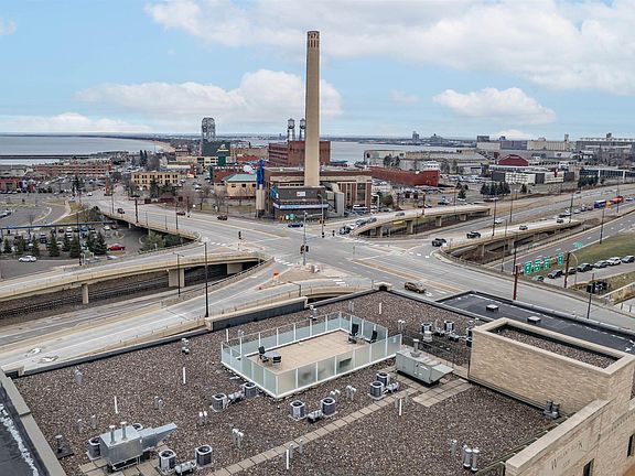 This stunning one-bedroom, one-bath condo is located in the highly sought-after Weiland Block Condominiums, offering an unbeatable combination of modern living and an incredible location. Situated on the top floor you are steps to the rooftop patio offering panoramic views of Lake Superior and the city. Step inside to discover a beautifully designed space with an open-concept floor plan, perfect for both relaxation and entertaining. The modern kitchen features sleek countertops and a breakfast bar, seamlessly connecting to the living and dining areas. There is ample storage space throughout the condo and the storage room. As a resident, you'll enjoy the convenience of a secured building with 24/7 guard security and indoor heated parking, providing peace of mind throughout the year. The building also features a rooftop patio, ideal for soaking in the breathtaking views of the city and Lake Superior. The condo’s location in Downtown Duluth offers easy access to the skywalk system, with a variety of entertainment options, dining, and shopping right at your doorstep. Canal Park is just minutes away, and you'll enjoy all the benefits of urban living with the beauty of nature just beyond. This condo is truly a gem—offering a unique blend of style, security, and prime location. Don’t miss the opportunity to make it your new home. Schedule a private tour today!