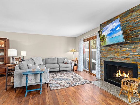 This meticulously maintained townhome is just what you've been waiting for! Raised paneled cabinetry, hardwood floors, gas fireplace with flagstone surround. Kitchen includes granite counters, custom tile backsplash and tile floors. Convenient 1st floor laundry. Dining room opens to spacious living room . Living room can be split to also utilize as a home office with the included desk ensemble. Two sets of sliding glass doors open onto the newer composite deck. First floor powder room with granite counters, upgraded vanity & tile. The 2nd level features newer built in hall linen cabinetry, generous sized 2nd bedroom with double doors & large closet. Expansive master suite with sitting area, sliders to private balcony & pond views across the way, WIC, private vanity and shared access to the full bath. You will find plenty of storage in the basement that has a mini kitchenette. The two car attached garage has epoxied floor and a pull down attic! Located in the highly desirable Prestbury Turtle Cove community with trails, pool, clubhouse, tennis courts, lake & much more! HOA covers roof, siding, trim, lawn care, snow removal & garbage. Bliss Creek Golf Course & restaurant are located across the street. Resort living at it's best!