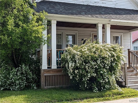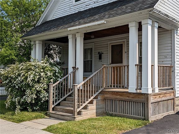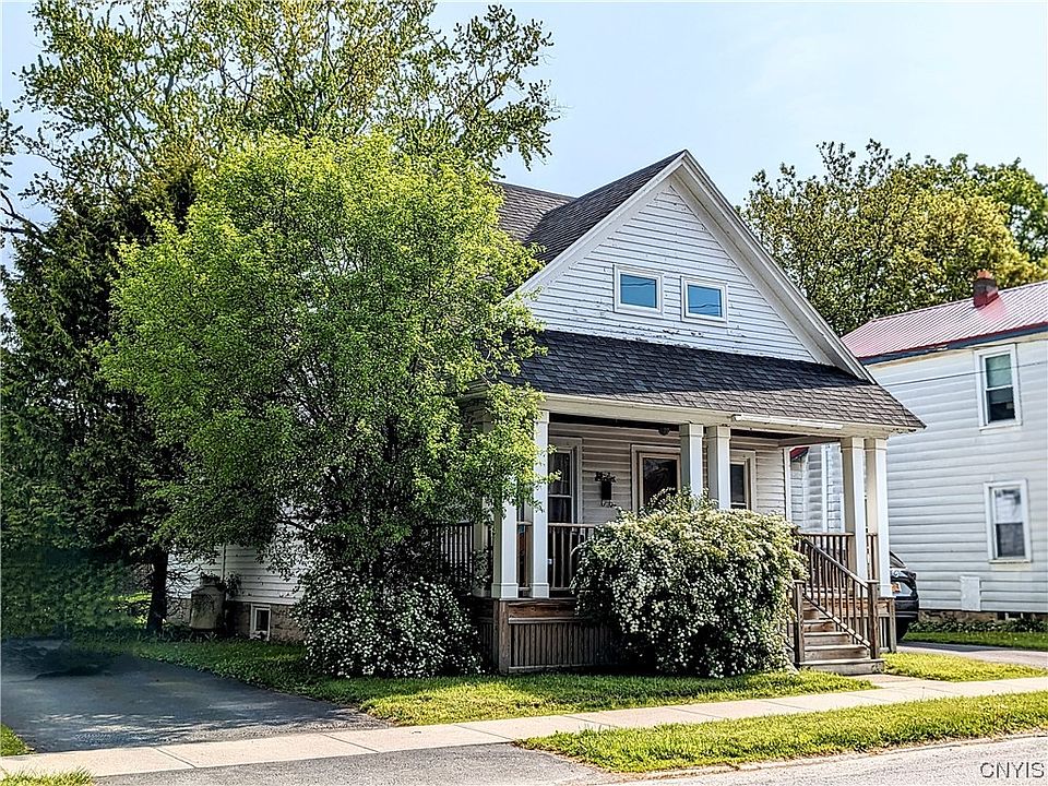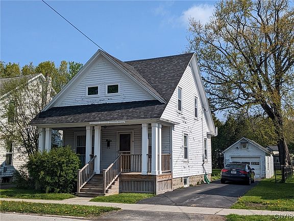 Village home with recently renovated family room, and kitchen with breakfast counter opening into the dining room. Front of house has two more living room spaces. 2 bedrooms upstairs and full bath. One bedroom has two closets and one is large enough to fit a desk for a small office. Roof is only 7 years old. New hot water heater. 5 year old pressure treated front deck is a great space to relax! New plumbing and electric and recently replaced windows. Newer wood floor in family room. Paved driveway sealed last year. Nice level yard and detached one car garage with additional length for even more space. Plenty of basement storage. Close to shops and Colgate University. Newer dishwasher, dryer and microwave. Tenant currently in house has a lease to July.
