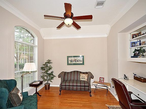 Beautiful one story Emerald built home that backs to Neighborhood Park. Elegant high ceiling entry - with tile floors, Formal Dining Room has gleaming wood floors and detailed molding. Private Study with French Door entry and built-in computer desk could also be used as formal Living area. The Kitchen is perfect for the 'Chef' of the house with granite countertops, center island with gas range, lots of counter space and storage plus breakfast bar. A spacious Family Room opens to both the Kitchen and eating nook and has a built-in Dry Bar, high ceilings and gas-log fireplace. There is also a sunny Texas Lanai, with windows to the backyard and 2 skylights. This room could easily be turned into a Game Room. Outside is a large wood deck ~ perfect for BBQ's with family & friends and an expansive wooded yard with enough space to add a pool. Walk to the neighborhood park around the corner. You're also close to Schools and Shopping. The perfect combination of privacy, but convenience to all amenities!<br/><br/>Brokered And Advertised By: Prudential Gary Greene, REALTORS<br/>Listing Agent: Brad Carlson