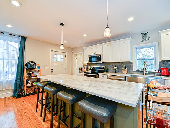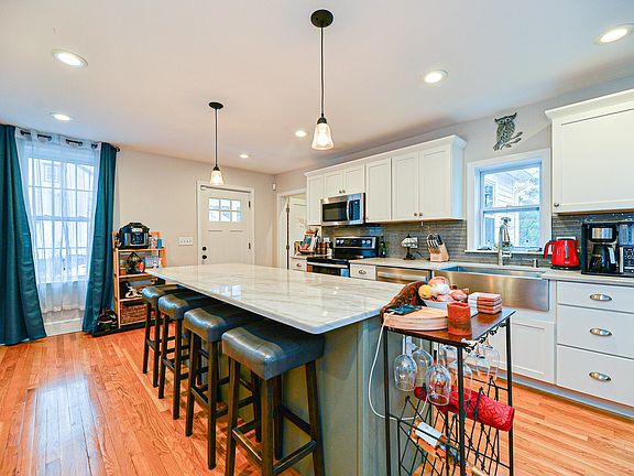 Welcome home to this charming, recently renovated (2019), Hampton home. The craftmanship is evident in the beautiful design displayed throughout. Both the wide-open kitchen/dining and living/sitting rooms span the entire width of the first floor. The office/study offers an open cathedral ceiling. Both the kitchen and the office open onto the very private and spacious deck, overlooking a generous back yard. Did I mention the jewel of this home is the gorgeous kitchen island 7.5' X 3'. All "soft close" Medallion cabinetry. Upstairs can be found the spacious primary suite and two front bedrooms along with the second full bathroom. The replaced and added windows offer an abundance of (always welcome) sunlight. Plenty of storage can be found below in the basement. This is a perfect commuter location in any direction. Just a stroll to all that downtown Hampton has to offer, along with its close proximity to the rail trail. The perfect home to start the new year.