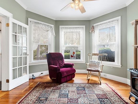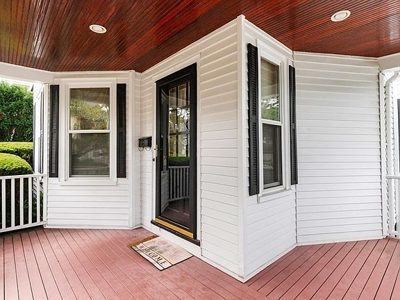 Located in the heart of Medford, on a pretty tree lined street, in a lovely neighborhood that offers easy access to restaurants, shops, grocery store, highway & public transportation. As you enter the foyer your gaze will be drawn to the intricately carved Newel Posts on the staircase to the 2nd. floor. A French door sweeps you into a sunny LR. with gas stove. A formal DR with chairrail mouldings provides ample space for entertaining. Adjacent to the dining room is a spacious eat-in KIT that features a skylight, ample cabinet space, some with pull out draws for easy access, and a gas stove, A large primary BR with an en suite bath, mini split, laundry and a private side porch to enjoy your morning coffee complete the first floor.The 2nd level hosts three BR and a second BTH and the fifth BR with skylight is on the third level. Energy efficient w/sun panels and insulation. Beautifully manicured gardens surround a stone patio-a perfect spot to enjoy the warm weather and outdoor dining.