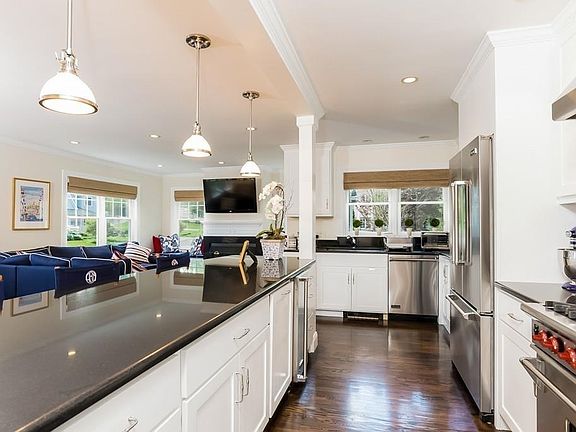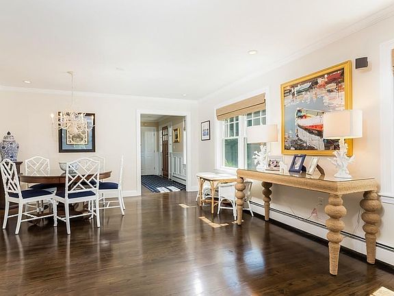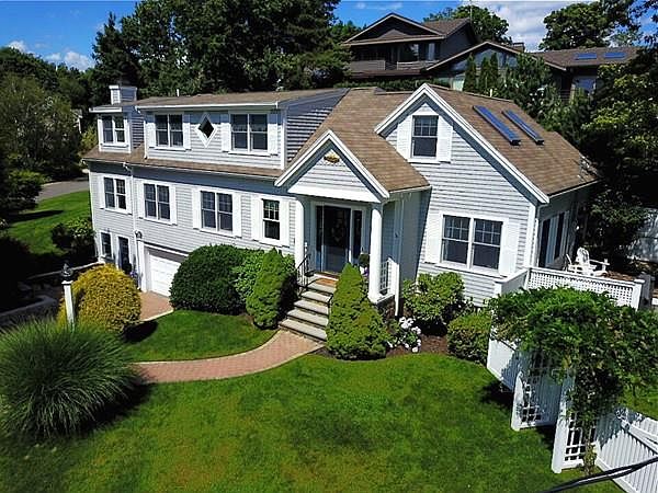 Beautiful Nantucket style 4 bedroom colonial located on Marblehead Neck just steps from the ocean and Devereaux Beach with incredible views of the Boston skyline. The attention to detail in this impeccably maintained home is striking: master carpentry featuring; crown moldings, custom built-ins, closets, rich wood floors and professional landscaping. The interior boasts a chef's kitchen including granite counters, white cabinetry, a Wolf Gourmet 6 burner stove, Bosch oven, Viking refrigerator, dishwasher and wine refrigerator that flows into the open-concept dining area and fireplaced family room. A more formal living room, office and full bath complete the first level. Upstairs are 3 bedrooms and 2 full baths including a master suite with walk-in closet and large master bath with claw foot tub. The attached 2-car garage connects to a mudroom on one side with a bonus/exercise room and half bath on the other. The yard is completely fenced in with a patio and hot tub. Welcome home!