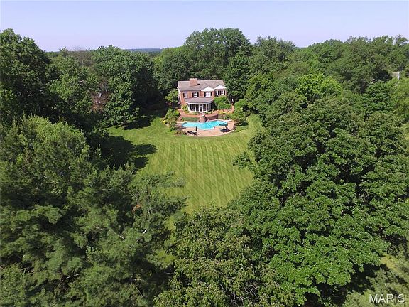 Tucked away in a secluded park-like setting in the heart of Ladue, this gracious two-story home has been impeccably maintained & thoughtfully updated. The layout flows seamlessly from the elegant living room to the expansive paneled family room & stunning curved garden room, which opens to a sprawling patio. A charming, updated kitchen & spacious dining room provide the perfect backdrop for entertaining.Upstairs, the primary suite boasts a dressing area, generous closets & an en-suite bath. 5 additional bedrooms & 4 updated bathrooms complete the 2nd floor, with 2 currently used as offices. The lower level features a recreation room for added space. The approx. 24x24 garden room, with its curved exterior wall, offers panoramic views of the lush grounds. Ample storage & front & back staircases enhance convenience. Major updates include an elevator, newer roof, upgraded electrical & a significant 1986 expansion. The beautifully landscaped 2.48-acre lot offers remarkable privacy.