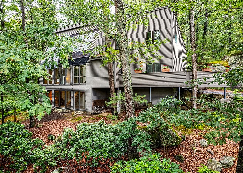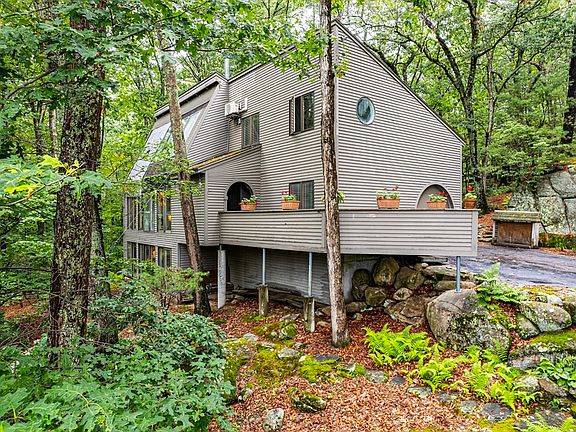 Discover an energy-efficient three-story custom home on 1.55 acres of woodland retreat. This envelope-style home uses a double-wall design creating an insulated airspace, reducing heat loss in winter and heat gain in summer for consistent indoor comfort and lower energy costs. Large custom windows fill the open-concept living area with natural light highlighting a cozy wood stove. The kitchen features custom built-ins, pantry, dining area, and generous storage. Lower-level master suite offers his & hers sinks, soaking tub, separate shower, and in-suite laundry. Upper level provides additional bedroom, family room, office, and full bath. Dedicated custom home office is perfect for remote work. Exterior includes built-in outdoor storage, garage, nearby trails and conservation. 3-bedroom septic allows future expansion. Mini splits in a few rooms. Ideally located near Upton Center, I-495 & Mass Pike—schedule a showing today!
