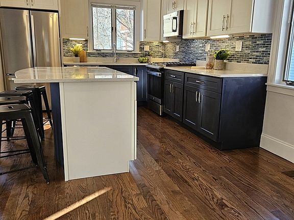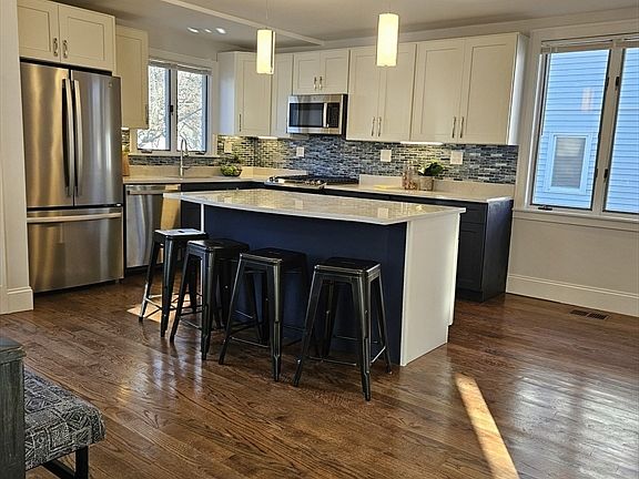 This home is in pristine condition on a quiet tree-lined residential street. It boasts a new kitchen with open-concept layout, 5 bedrooms (2 are primary bedrooms, with en-suites and double closets), 2 separate living areas, 4 new full bathrooms, a separate office area, a double wide driveway, a two-car garage, and a lovely rear deck overlooking a scenic rear yard. This home is comparable to new construction, as it was completely rehabbed: with new roof, heat/cooling systems, kitchen, bathrooms, floors etc. The home is ideal for a growing family and could easily be divided making the lower level a separate area for an in-law family member. It is super-centrally located: The Mass Pike and Storrow Drive are only minutes away; the Charles River and bike paths within walking distance, the Watertown Mall and Watertown Square less than a mile away. OPEN HOUSE Saturday 30th from 11:00 to 1:00pm
