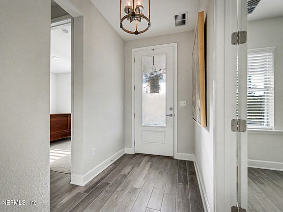Beautifully maintained 3-bedroom home with a dedicated office, covered front porch, and an extended covered back porch. The single-story layout includes an open kitchen with gas range, island, and tile flooring in main areas. Fenced backyard and rear-load 2-car garage. Front of the home faces a landscaped green space with neighboring front porches. Includes a dedicated laundry room, tankless water heater, and energy-efficient features. Residents enjoy access to Shearwater's amenities, including resort-style pools, lazy river, fitness lodge, tennis courts, trails, dog parks, sports fields, kayak launch, and community center. Nearby shopping, dining, and everyday essentials along the CR 210 corridor provide convenient access to both Jacksonville and St. Augustine.