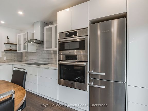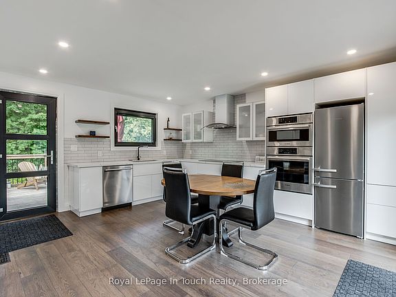 Welcome to this beautifully updated 4-bedroom, 2-bath home in the sought-after Georgian Highlands community, just steps from the shores of Georgian Bay. Nestled on a generous lot with a backyard pathway leading to the water, this property combines modern comfort with a prime location for year-round living or a getaway retreat. Inside, you'll find thoughtfully renovated spaces with high-end finishes throughout. The kitchen features quartz countertops, a Wolf induction cooktop, built-in microwave and convection oven, and a Miele refrigerator, while the updated baths bring a sleek, modern feel. European triple-glazed windows and doors (2022) offer exceptional energy efficiency, UV protection, soundproofing, and thermal insulation. Additional upgrades include engineered hardwood flooring, a forced air gas furnace and central air (2022), on-demand hot water, and the convenience of municipal water. The layout is ideal for flexible living. The upper level hosts 3 bedrooms and a renovated 3-piece bath, while the ground-level walkout includes a bedroom, modern 3-piece bath, and rec room - perfect for extended family or guests. An attached single garage provides convenience. As part of the Georgian Highlands community, new owners can apply for association membership, which grants access to private beaches, parks, and scenic pathways just beyond your backyard. Located only 90 minutes from the GTA and a short drive to Penetanguishene and Midland, you'll enjoy easy access to shopping, dining, live theatre, museums, golf, and more. This move-in ready home blends modern upgrades with the natural beauty of Georgian Bay - ready to be enjoyed for years to come.