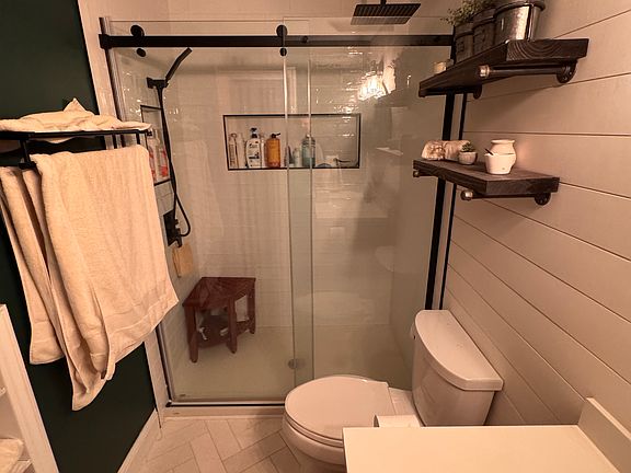 Step inside to find a bright and open floor plan with modern finishes throughout. Kitchen features quartz countertops and stainless steel appliances. Custom tiled bathroom features dual shower heads and tons of storage! Each of the 3 bedrooms feature hardwood floors, large closets, and custom blinds. Stay cool with central air controlled by a Nest thermostat. Garage and off street parking included!