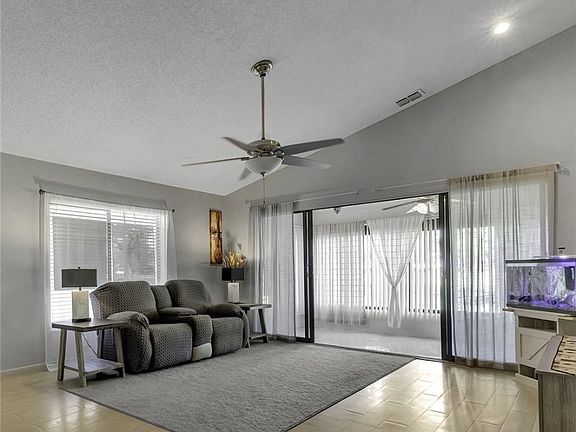 Pride of ownership shows throughout this comfortable Golf Course Home. Highly sought after two car garage with well cared for lawn and landscaping. Newly painted Sidewalk and Textured Driveway really look sharp. In a Villa Community but with a larger lot and well spaced for privacy, including a great view of the Golf Course. You will love the street with it's Cul De Sac creating only local traffic. Huge Lanai features Fully glassed room with air vent /return overlooking the GolfCourse but fully 4 Season usable. Really increases your living space. A feature you will love is the full wet bar in the Living/Dining Area. Great for Entertaining! HVAC 2013. Roof 2016. One of the more spacious villas in the community makes this home a must see! Don't forget this owner is including a free 1 year home warranty for a worry free move in.