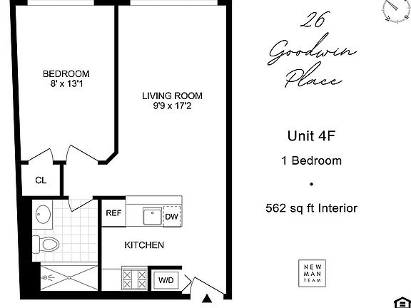 4F is a light-flooded, 1 bedroom, 1 bathroom apartment with designated storage and access to common roof. The apartment features an open living, dining & kitchen space and a spacious bedroom overlooking tree-lined Goodwin Place.
