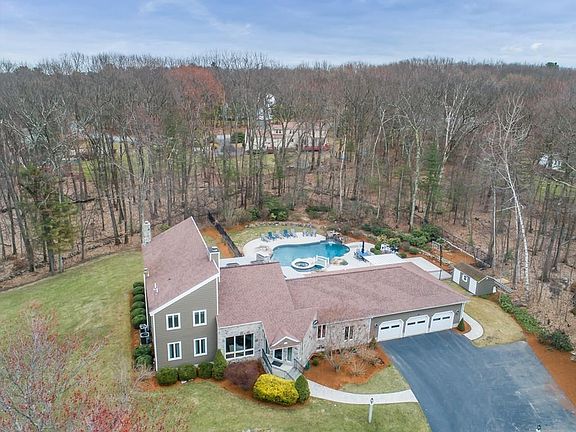 Stunning contemporary home located on cul de sac with 1.67 acres. Vacation at home in your private backyard oasis w/heated custom in-ground pool, hot tub, waterfall, outdoor kitchen, bar, pergola, and custom grill area. Magnificent second floor master suite w/stone fireplace, vaulted beamed ceiling, oversized walk in closet and newly remodeled en suite bath. Recently remodeled lower level with Coretec Plus XL LVP flooring offers a game room, exercise room, and media/man cave/play room w/cedar closet. Upon entering this spacious home you are greeted with beautiful new hardwood floors and vaulted ceilings. Sunken living room and family room each have fireplaces. Updated kitchen boasts gorgeous quartz counters and an abundance of grey cabinetry, upgraded appliances and even a warming drawer. Large laundry room w/generous cabinetry. ¾ bath has sauna to help you relax. This meticulously maintained home comes with a lifetime warranty on the new Everlast composite siding. All this and more.
