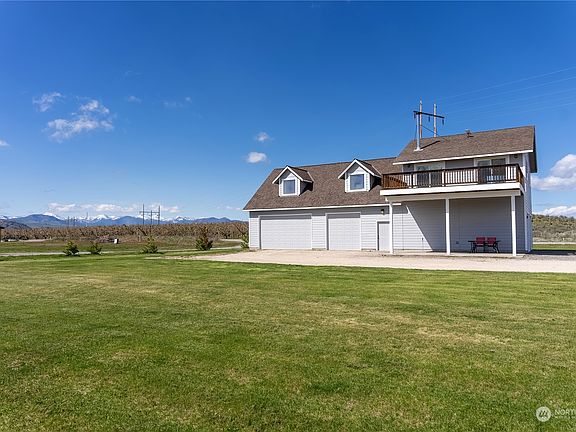Explore abundant GARAGE & STORAGE SPACE in this expansive property boasting a 5-bay insulated garage/shop and 1300+ square feet of living quarters above, including 1 bedroom and 1 full bathroom. Situated on 2.77 irrigated acres, amenities include high ceilings, a utility area, and a kitchen with modern appliances. Enjoy panoramic views from the spacious deck.