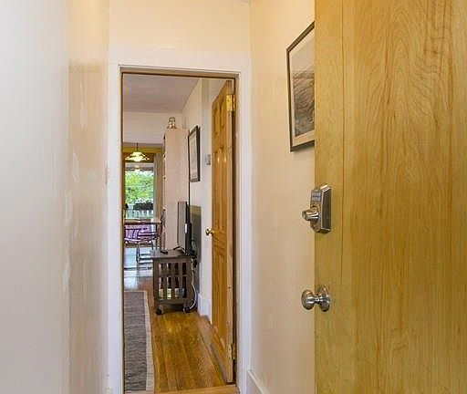 Adorable 2nd fl deleaded 1+-bed /1-bath condo above Union Sq. and below Prospect Hill with garage parking. The unit's entry hall/mudroom leads directly into the LR. To the left is a full tiled bathroom with granite countertop, and to the right is the oversized bedroom with bay window. The in-unit laundry is off the LR, next to the entrance to the eat-in kitchen with new wall oven, gas cooktop, maple cabinets, dishwasher, refrigerator, pine woodwork, and sliding glass doors to a private porch. A French door leads to a sunroom/office, with a deep closet with cat door. Back stairs lead to common yard and garages. Wood floors, lots of original charm and detail. Walk to Union Sq., Prospect Hill monument, off-leash dog park, Highland Kitchen, Sarma, Cuisine en Locale, winter and summer farmer's markets, restaurants, shops. MIT, Tufts, and Harvard accessible by foot, bike, and public transit, as are Kendall, Lechmere, Porter, Harvard, and Davis Sqs. Easy access to highways, Logan airport.