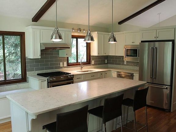 RENOVATED Deck House Inspired Home, on an easy maintenance, privately sited, 1.6 Acre lot in a highly desirable Wayland neighborhood. Stunning Light & Bright Chef's kitchen with Quartz counter tops & gas range which is open to a living room and dining area fit for Frank Lloyd Wright. This Mid-Century Modern design has sliders & oversized windows which allow nature to flow into the home. Along with the newly renovated Kitchen, other renovations include all 3 bathrooms, all hardwood floors refinished, Recently painted exterior & freshly painted interior. Solar panels installed to provide power to minimize electric bills. This home has 2 large family rooms, each with floor to ceiling brick fireplaces with bluestone hearths. It is priced to sell!! Great commuter location, less than 3 miles to Lincoln Station. Easy access to Rts 2, 90 & 95. Open House - Sun. 7/29 2:30-4:30 All Offers will be reviewed on Tuesday July 31 by 6:00 PM.
