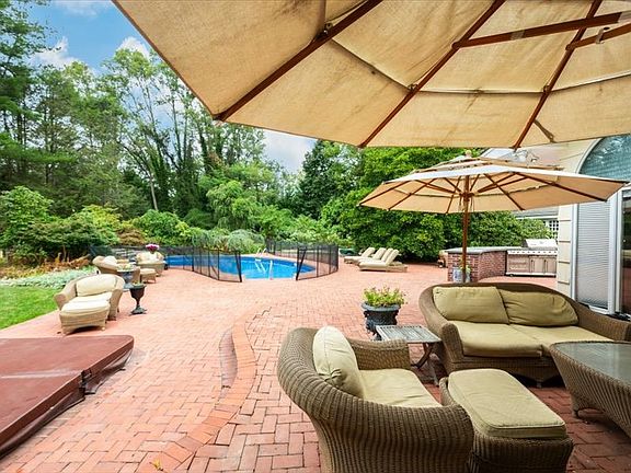 Private Beach Access with Boat Mooring | 4 Beds | 4 Baths | Pool | Tennis Discover this extraordinary 4-bedroom, 4-bathroom Colonial estate, nestled in prestigious Lloyd Harbor just minutes from the heart of Huntington Village. Enjoy the rare privilege of private beach access with boat mooring, offering a coveted lifestyle paired with the charm and culture of one of Long Island's most vibrant communities. Set on a private level shy 3 acre lot with lush landscaping, this residence is designed for both refined living and entertaining. The home welcomes you with an elegant entrance foyer, opening to a sun-drenched layout with cathedral ceilings, skylights, and gleaming hardwood floors throughout. The main level features a first-floor bedroom, perfect for guests or multigenerational living, and a gracious flow between the formal living and dining rooms. At the heart of the home is a designer eat-in kitchen, complete with marble countertops, a walk-in pantry, and top-tier appliances including a cooktop, wall oven, microwave, and dishwasher. Upstairs, the primary suite offers a tranquil retreat with a luxurious en-suite bath and expansive walk-in cedar closets. Two additional bedrooms and a full bathroom complete the upper level. The home includes 3 full bathrooms and 1 half bath, including a stylish powder room for guests. The finished full basement provides flexible living space ideal for a media room, home gym, or recreation area, while dedicated guest quarters offer added comfort and privacy. Step outside to your personal sanctuary featuring a private in-ground pool, hot tub, deck, patio and guest bungalow, surrounded by manicured gardens and mature trees. Recreational amenities include a private tennis court, greenhouse, and additional outbuildings, creating a true estate-like setting.