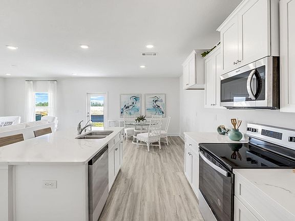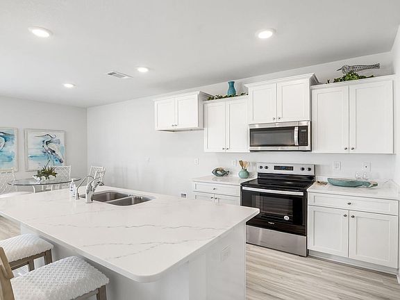 Gorgeous quartz countertopsGlistening gulf coast beachesBeautiful evp flooringStainless-steel appliances