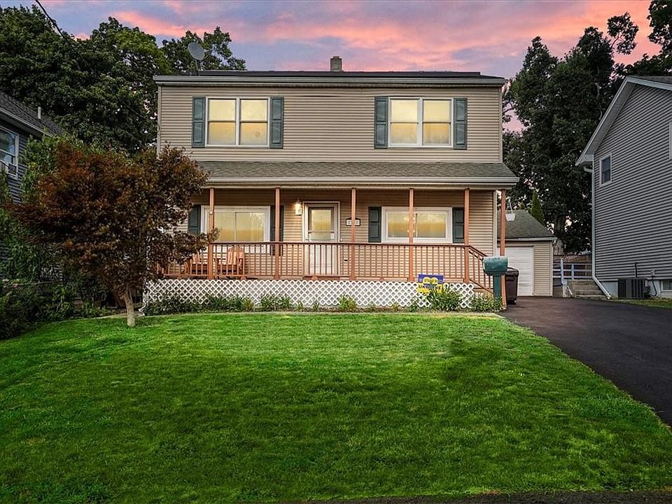Beautiful colonial under $500,000 with low taxes of $8,035 (no exemption $1,498.00) is yours for the taking! Make a lifetime of memories in this BEAUTIFUL 4 bedroom 2 bath colonial offering large rooms sweet front porch large deck above ground pool, full basement one car .... pay next to nothing for electric with the existing SOLAR panel system (info in attachments) a full basement, one car garage close and convenient to all! Major shopping dining and entertainment is seconds away and there is public bus line right down the street!