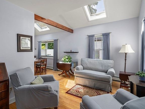 This charming 5 room, 1 bedroom, 1 bath Bungalow is located in the Historic District, and has all the character expected from a home built in the 1920’s. The inviting front porch leads to a sunlit living room with vaulted ceilings & skylights. The open dining room integrates the kitchen seamlessly, and the office/den provides great additional space. The primary suite is aptly sized and enjoys a large closet with built-in shelving. The home has been very well cared for over the years evidenced by a new roof (2021), central air (2019), as well as updates to the kitchen & windows. A back deck and patio overlook an oasis of beautifully manicured gardens and includes a fenced-in backyard on .25 acres of land. Conveniently located near Westborough Center’s restaurants & shops, as well as the Commuter Rail, this perfect condo alternative makes for a great starter home, downsizer home, or even investment property. Come see this timeless treasure!