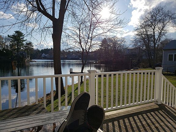 Waterfront home on Sluice Pond with 100ft frontage and private beach, over 18,000sf land. New deck and great 1st floor update to open floor plan, french doors and slider to deck. Great kitchen and dining room, new counters and cooktop. Hardwood flooring throughout. 2 Person Jacuzzi with view of the pond. Enjoy the feeling of being upcountry on the lake. New roof, vinyl siding, windows, boiler, hot water heater. Enjoy all that Sluice Pond has to offer, boating, fishing, swimming right from your front yard. Sit in your family room with 16 feet of windows overlooking the pond and enjoy countless hours of wildlife and waterfront serenity in a great neighborhood.