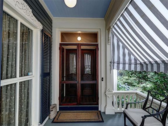 This gracious home built in the Eastlake Stick Victorian Style in 1876 for Clarence H. Carpenter, has been meticulously renovated for 21st Century living. Set on a corner lot with an inviting lawn, carriage house and a charming front porch entry with striped awnings. A beautiful entry hall is flanked by a parlor and dining room each with a fireplace, a fully equipped eat in kitchen also with a fireplace all with 10' ceilings, crown moldings and rich hardwood floors. The second floor has three generous bedrooms and two full baths. This south facing home is bathed in sunlight and sits on a prime corner lot just a short stroll to Wayland Square. Surrounded by mature plantings makes for an enchanting city home.