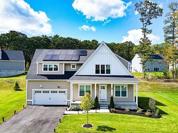 Welcome to The Brooklyn model at Harmony’s Eastland Community, a beautifully designed 4-bedroom, 2.5-bath Colonial offering over 3100 sqft. of living space with premium upgrades. The first floor features a spacious great room with hardwood flooring and recessed lighting, a gourmet kitchen with upgraded appliances, backsplash, and breakfast area, a formal dining room, and a private study with French doors. Upstairs, the luxurious primary suite includes a walk-in closet and spa-like bath, complemented by three additional bedrooms and a guest bath with double vanity. The finished basement adds 550 sqft. of versatile living space. Energy efficiency is ensured with a prepaid 25-year solar lease, while smart features include Eufy cameras, video doorbell, and a smart garage lock. Complete with a 2-car garage, farmer’s porch, and rear deck, this home blends classic charm with modern living in a desirable Bellingham neighborhood.