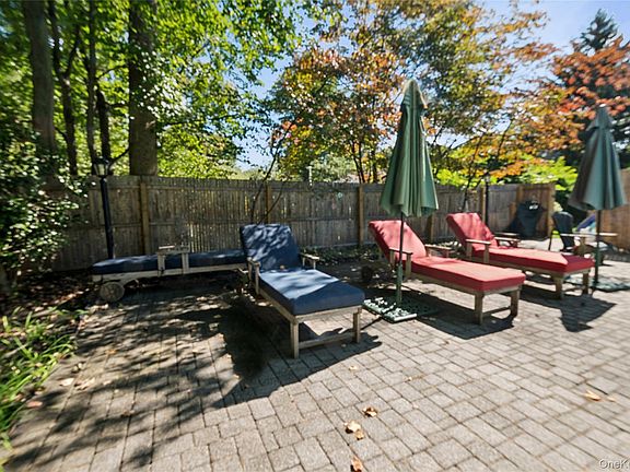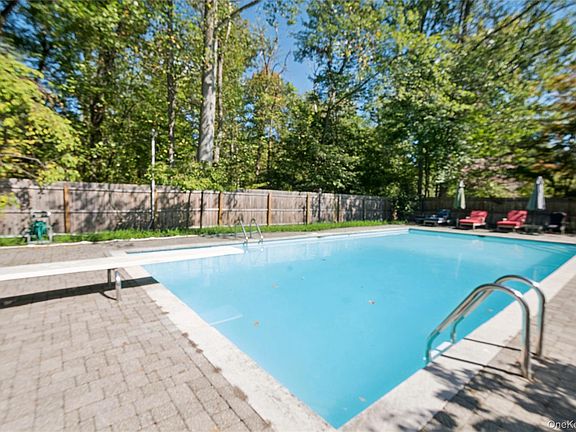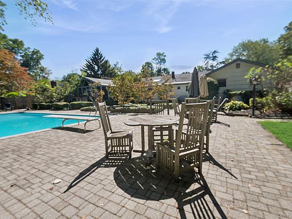 A rare find! Set in a cul de sac in one of West Nyack's most sought after locations, this expanded 5 bedroom mid century straight ranch is a gem! The front porch welcomes you into the well designed house. A charming hall opens to a living room w vaulted ceiling & dining room w a bay window, bringing the outside in. Adjacent is the family room highlighted by a woodburning fireplace. Beyond is the a breathtaking three season room, crafted from redwood a soaring ceiling. Cooking is fun in the sunny well appointed kitchen including a new dishwasher, high end appliances &, spacious dinette w giant windows overlooking the country club yard. A skylight adds to the joy in the heart of the house. The bedroom wing, features four bedrooms PLUS a huge primary suite, complete with dual closets, dual sinks, a tub & shower & heat lamp. The lower level boasts an oversized area for parties, exercise or play, laundry with slop sink & laundry chute from upstairs for easy access. Another extra is a splendid walk in cedar closet. Recessed lighting in the house adds to the allure as does the hardwood floors, protected by carpet. Your car will be kept clean & dry in the two car garage, with new door & remote. Step outside to the backyard & you'll want to vacation at home! The heated gunite inground pool is captivating as is the huige surrounding area, perfect to party or relax & enjoy nature's best. A new fence surrounds the pool & there's underground sprinklers as well. Lovingly cherished, this very special house will being joy to a new family!