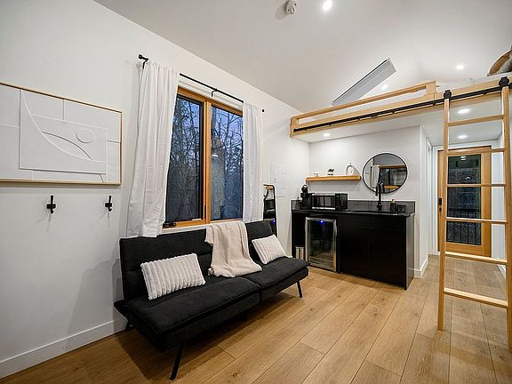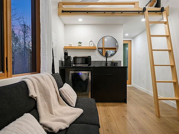 Lofted Perch & Open Concept Living: Each cabin features its own loft area—ideal for dreamy sleeping quarters, reading nooks, or creative escapes. The open living and kitchen spaces foster connection, light, and life with wooden interiors, plush accents, and soaring ceilings.