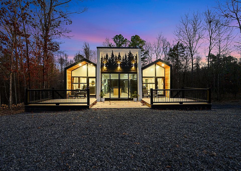 Welcome to your enchanted getaway nestled under the canopy of the pines—where rustic serenity meets celestial splendor. This unique fully stocked double-cabin layout with Full Kitchen with Washer/Dryer Unit is a rare gem—a pair of lofted sanctuaries seamlessly joined, doubling the charm and versatility of your retreat.