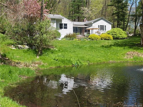 You'll be enchanted by the rustic feeling of this comfortable ranch house located about an hour from NYC with lots of original CT country charm. The secluded location of the house looking out at the pond is a bucolic setting. Beautiful plantings and flowering shrubs complete the perfect picture. There is a newer heating system, redone roof in the flat areas and a tankless hot water heater installed. Interior features include antique wide floorboards, exposed beams, and picture windows to enjoy the view of the garden and pond. The open floor plan makes the public spaces great for entertaining or family gatherings. There are large bedrooms with lots of closet space. And, with a lower level playroom or office, the house can serve many needs. The Weston Field Club is in walking distance. Private membership offers tennis, a pool, dining facilities, and activities for kids.