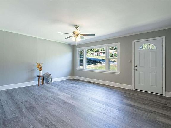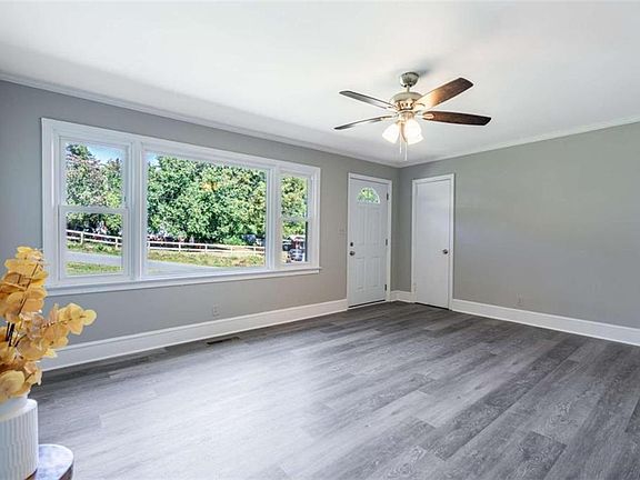 This charming home sits on a beautiful double lot with a private backyard, covered back porch, and a detached carport with a convenient storage room. The circle driveway provides plenty of parking, perfect for gatherings or multiple vehicles. Inside, you'll find a stylish living room and a split 3-bedroom, 1-bath floor plan that offers both comfort and privacy. The two guest bedrooms are spacious and ideal for growing families or guests. A cozy mudroom sits just off the back door, and the large kitchen provides plenty of room for cooking and entertaining.
