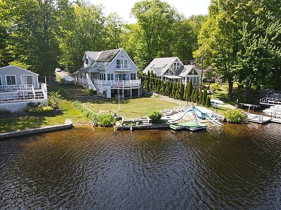 Looking for a beautiful Lake house that checks all the boxes? Come visit this contemporary 3 bed, 3 bath home on Lake Monomonac in Winchendon. The primary suite (top floor) includes a full bath and a walk-in closet, a walk out balcony and a loft sitting area. Cathedral ceilings in the open concept living room/dining/kitchen where you can kick back and savor the amazing view of the water through the sliding glass doors or out on the large wrap around deck. A cozy gas fireplace is a nice plus. The kitchen has stainless steel appliances and timeless corian countertops with plenty of storage and a PANTRY! There's a beach area, a dock for your boat, a floating dock with a slide, a firepit, and a shed. Also, seller OWNED solar panels for lowered electric bills and the possibility of earning $. It's in a "no wake zone." These are just some of the acceptional characterisitcs of this home.