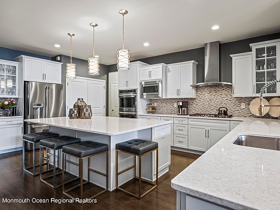 Luxury Living and Open Floor Plan in desirable Four Ponds@Lincroft Townhouse Community Created by Award Winning Builder, K.Hovnanian. Energy Efficient Pratt Model-Features 3 Bedrooms, 2.5 Bathrooms. Upgraded Ultra Gourmet Kitchen with 2 Wall Ovens, Oversized Quartz Island, Stainless Steel Appliances & Stove Hood, Engineered Wood Flooring, Dining Room & Family Room 14' Ceilings, Gas Fireplace with Decorative Porcelain Surround & Overmantel. 1st Floor Master Bedroom 14' Tray Ceiling, Master Bathroom with 2 Walk-In Closets, Shower Stall, Double Sinks & Vanities. 2nd Floor has a Loft 2 Bedrooms, Bathroom, and 4th Bedroom/Den/Office Option. Full Finished Basement with Rough Plumbing for Built Out Bathroom. Outdoor Paver Patio to Relax & Enjoy. Make an Appointment for Your Private Showing Today