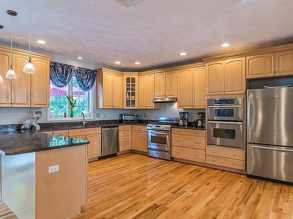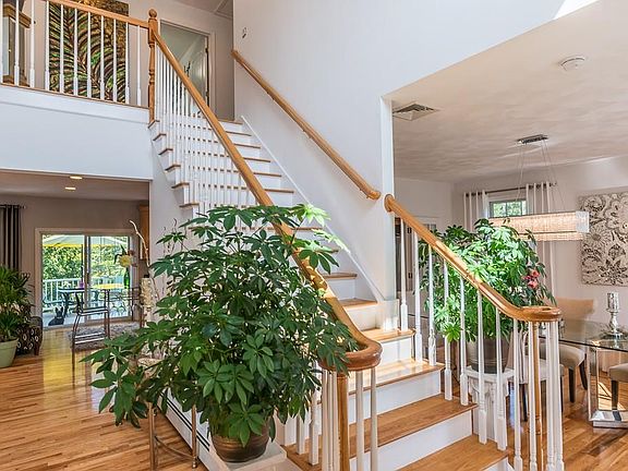 A stunning entry into this meticulously maintained center-entrance colonial! Note its foyer with grand staircase, soaring ceilings, open concept feel and pristine hardwood floors throughout that reflects the abundant entry sunlight. Left of foyer, find a tray-ceiling living room, to the right a spacious dining room and to its rear, the fully open-concept family room with fireplace and fully- appliance stainless-steel kitchen with eat-in area. Exit sliding doors to a full-length deck for the quintessence of entertaining. Up the striking staircase to a platform covered with pristine hardwood floors, dedicated laundry room, master bedroom en suite with double vanities in the master bath, spacious walk-in closet and two additional bedrooms. Enjoy features of central air and central vacuum, walkout heated-basement and sliders exiting to a patio complete with hot tub. The home is wrapped in privacy with an abundance of green lawn on a spacious lot. Near Magnolia Village and train to Boston.