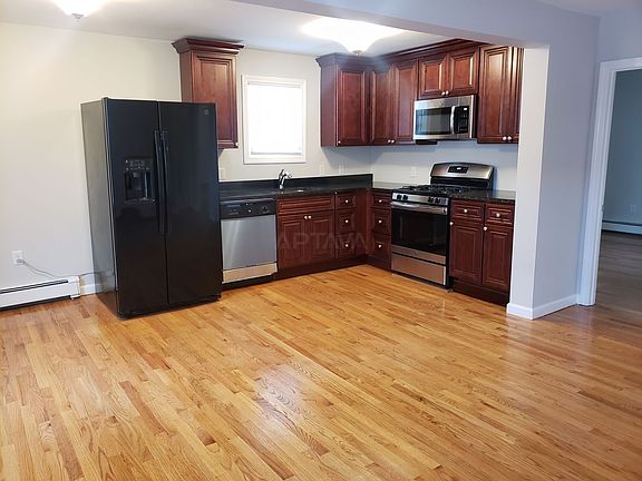 Features of note include hardwood floors. Cats and dogs are negotiable. Price includes municipal water. The modern eat-in kitchen has dishwasher, gas range, granite countertops and stainless steel appliances. Has free in-unit laundry as well as 2 off-street parking spaces. Broker fee may apply. Available Now.