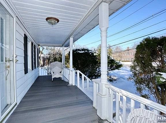 Charming 3-bedroom sidehall colonial with picture-perfect lemonade porch is just steps from public transportation, shopping and all that sought after Paramus has to offer including low taxes, great schools and commuter convenience. The crisp white kitchen with granite breakfast bar is open to the dining area that looks out through sliding glass doors to the newer oversize low maintenance deck and spacious fenced-in backyard. The first floor also has a formal living room with plenty of natural light, an office nook with bay window and an updated powder room. Upstairs find three bedrooms, a full bath with a separate shower stall with steam, and a jacuzzi tub. The partially finished walk up attic has plenty of space for storage. The finished basement has a laundry area, utility room, a bonus office or gym and backyard access. Newly refinished wood flooring upstairs and throughout. Autos are optional with NYC bus, grocery & retail stores and Valley Hospital nearby.