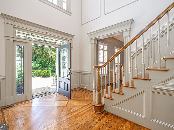 Located in the desirable Midpoint section of The Landings, this beautifully designed home combines sophisticated style with masterful detailing. This stunning 5 bedroom, 5 and a half bathroom home blends elegance, functionality and resort-style living. Upon entering you will immediately appreciate the light-filled, dramatic ceiling heights enhanced by custom millwork, elegant coffered architecture and rich hardwood flooring. A formal dining room and study lead you to the heart of the home with two generously scaled living areas, each with fireplaces. The gourmet kitchen is appointed with top-of-the-line appliances, a spacious island, walk-in pantry, white ash cabinetry along with a separate wet bar. The elegant owner's suite on the main level boasts luxurious features including a soaking tub, a large separate shower, double vanities and dual walk-in closets, all steps away from the screened porch and lush outdoor retreat. Enjoy outdoor living with a resort-like heated pool, hot tub and updated landscaping areas, ideal for entertaining or relaxing. Head upstairs to find four generous bedrooms and four full bathrooms, all boasting the same craftsmanship and trim detail carried from downstairs. Whether you're looking to host guests, have an in-law suite, a playroom, home theater or gym, you will love the substantial bonus room with a full bath above the 3 car garage with golf cart bay. Other highlights include an encapsulated crawlspace with dual dehumidifiers, a new HVAC system, spray foam insulation, plantation shutters and walk-in storage throughout. This beautifully crafted home offers an ideal Landings lifestyle with world-class amenities galore!