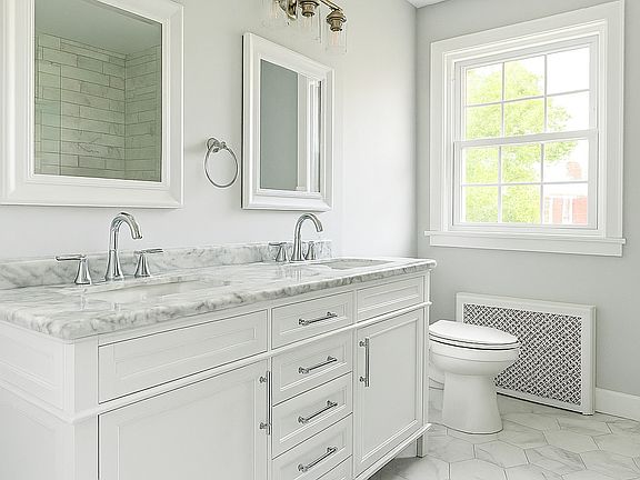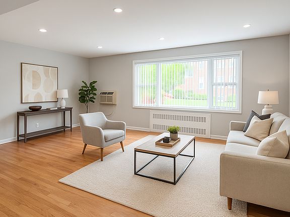 This updated unit boasts modern amenities, including stainless steel appliances, new kitchen cabinetry, and chic lighting fixtures. The renovated bathroom features contemporary vanities, enhancing the overall appeal of the space.