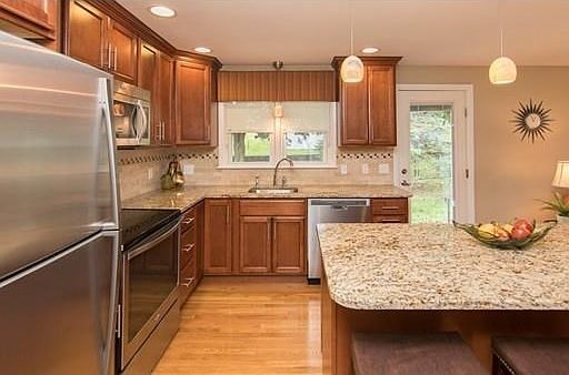 Renovated Raised Ranch is waiting for it's new owner! Beautifully appointed two bedroom one bath home with hardwood flooring throughout and lots of natural light. Updated kitchen done in 2013 with granite countertops, large center island, upgraded maple cabinets, and SS appliances. Relax in the Den/Dining area which is open to the kitchen area with easy access to the backyard. Two generous sized bedrooms and updated full bathroom. Heating converted from oil to gas in 2013 making this home very energy efficient. Garage and attic insulated in 2013 by MassSave. Meticulously maintained grounds with private backyard and lovely garden area. Established neighborhood near retail shopping, schools, and convenient commuter location. Great condo alternative with no condo fees. Whether you are looking for a starter home, investment property, or wanting to downsize -This move-in condition home is a must see!
