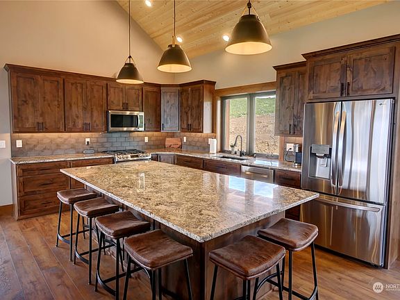 Magnificent home on 21.5 acres. Iconic and inspiring Cap Wright Mountain views. Newly constructed, custom 2,334 sq ft, 4 bedroom, 2 bath house, featuring an open floor plan, vaulted ceilings, and large living room with a gorgeous rock fireplace. Enjoy the sweeping views and custom detail in every room. Large entertaining kitchen with unique family style dining area. Custom solid metal doors leading to the covered decks for year-round enjoyment. Simple landscaping with irrigation system leaving you time to enjoy watching the seasons change and the wildlife roam.