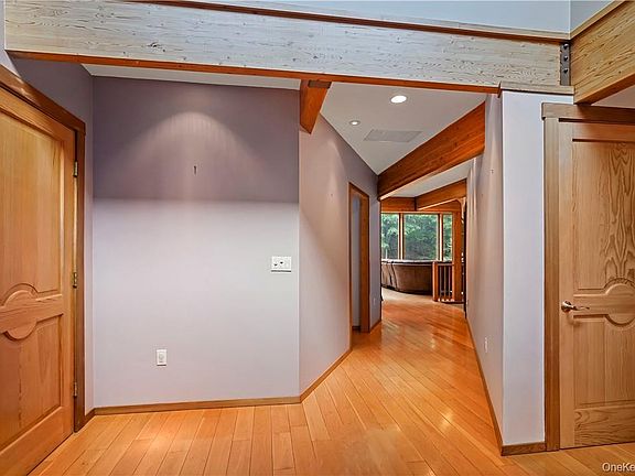 Enjoy a perfect weekend escape or year round lake living! This contemporary chalet is nestled in the heart of Goldens Bridge Colony surrounded by 17 acres with lake rights, swimming, club house, summer camp, hiking trails and so much more. This home offers a perfect blend of modern design with a tranquil cabin charm. Features include; high pitch ceilings, wall to wall expansive windows through out the home bringing the outdoor in. The well thought out design features a double closet entry hall, a catch all nook, half bath, the heart of the home hosts a chefs kitchen with a five burner stove, granite counters, plenty of prep space, formal dining with sliding doors to the two tier deck with outdoor kitchen and a family room with stone fireplace. The unique two story primary suite includes a walk-in closet, bath w/ double sink and jacuzzi, dressing area and spiral stairs. The second floor hosts two additional bedrooms, hall bath and spacious loft area. Lower level hosts a media/playroom, exercise room, laundry, half bath, entrance to garage and plenty of storage!