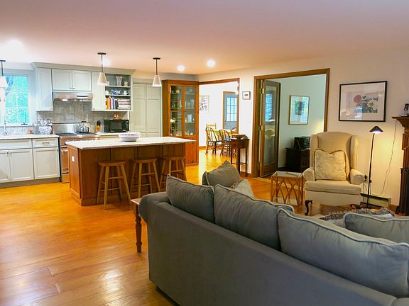 Large comfortable and charming expanded Cape in a lovely setting very close to Lambert's Cove Beach and James Pond Preserve with special walking access to Swimming on Ice House Pond in the Manaquayak Preserve as well as deeded walking access to swim and boat on Seth's Pond. The living room is open to the beautiful newly-renovated kitchen and has an often-used wood-burning fireplace. There is a separate family room with big windows that really bring in the views of the wooded setting. Off the kitchen is the large dining room with a door out to the expansive back deck. Also off the kitchen is the laundry room/pantry. The first floor also has 2, nicely proportioned bedrooms, an office and a full bath. Upstairs is a large primary bedroom as well as another generously-sized bedroom, both with banks of south-facing windows flooding these rooms with sunlight and both large enough for comfortable sitting areas for conversation, reading or just getting away from the hustle and bustle. These two bedrooms share a "Jack & Jill" bath. The charming and newly renovated Lambert's Cove Inn is just up the hill for dinners out when returning from a day at Lambert's Cove beach, watching the sunset at James Pond or swimming at one of the ponds.