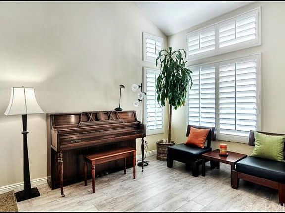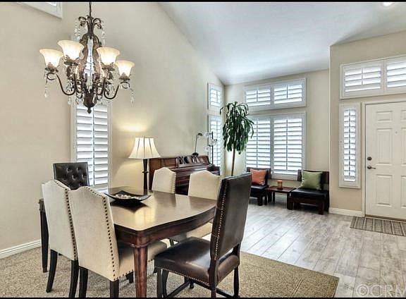 EXCEPTIONAL LOCATION, VIEW AND SPACIOUS FLOOR PLAN! Awesome perimeter location overlooking lush greenbelts, mature trees and city lights views, spacious floor plan offering a large living and dining room with cathedral ceilings and upgraded chandelier, large family room with fireplace and entertainment niche and an awesome kitchen with center island, recessed lighting, newer & upgraded appliances, designer faucet, lots of cabinets and pantry with newly upgraded brushed nickle hardware. Double doors leading to the super sized master suite featuring 2nd fireplace, vaulted ceilings, city lights views and an awesome master bathroom with separate tub and shower enclosure, vanity with dual sinks and walk-in closet. Convenient upstairs full size laundry area and ample linen cabinets. Brand new designer laminate wood floors and upgraded baseboards, fresh two tone interior paint, mirrored closet doors, upgraded lighting fixtures, ceiling fan, upgraded bathroom fixtures including bidet at powder room, raised panel doors,.. elevated lot featuring a private yard with no homes behind overlooking lush greenbelts, trees and view of city lights. All this plus excellent proximity to award winning schools, Aliso Viejo town center with shops, restaurants, theatre and parks.
