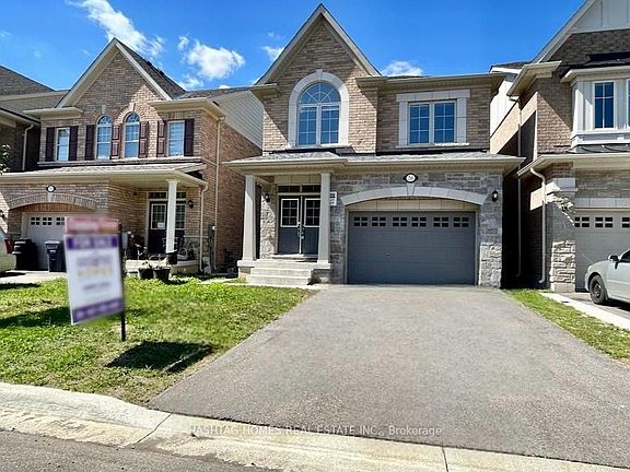 This upgraded 4-bedroom, 3-bathroom home features a 1.5-car garage and a rare builder-built separate entrance to the basement, offering excellent income or in-law potential. The basement is framed with an egress window and architectural plans in place, making it ready for a future legal suite. Designed with 9-ft ceilings, upgraded hardwood and tile flooring, custom stair spindles and railings, and stylish upgraded door handles and outlet covers, every detail has been thoughtfully selected. The chefs kitchen showcases upgraded cabinetry, backsplash, and quartz countertops. Built all brick and stone with, this home combines lasting quality with modern comfort. Ideally located near parks, top-rated schools, transit, and daily conveniences.