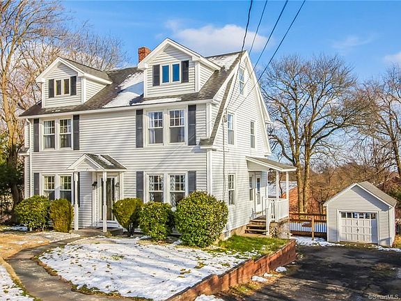 STATELY COLONIAL home with classic center entrance. Large, sun-filled living room and lovely formal dining room invite you to lounge and entertain. Bright, open kitchen boasts stainless appliances, breakfast bar with casual seating area, and lots of storage and counter space for culinary adventures. The cozy second floor has 4 good-sized bedrooms and newer bath. A full, floored, walk-up attic is conveniently accessed from the master bedroom. The partially finished basement is rustically paneled with rough wood and is carpeted for warmth and comfort. A door accesses the back yard. Outside is a one-car garage with attached deck for outdoor activities, This wonderful home is close to shopping, town, and I-95, yet has a small, quiet neighborhood feel.