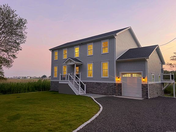 No Flood Insurance Required! Built in 2025, 26 Meadowood Lane offers a rare mix of architectural elegance, energy efficiency, and a shoreline lifestyle all outside a flood zone. Just 0.7 mi to Old Saybrook Town Beach, 1.2 mi to Fenwick Golf Course, 1.1 mi to Saybrook Point Marina, 0.9 mi to downtown Main Street, and 1.4 mi to the Old Saybrook train station, this Colonial delivers both convenience and serenity. Inside, red oak floors bathe in natural light through impact-rated windows. The open-concept layout flows through arched transitions to a chef's kitchen featuring a 6-burner gas range, Carrera marble waterfall island, walk-in pantry, and custom cabinetry. From here, sliding doors lead to an expansive Azek deck with unobstructed views of Hagar Creek and Long Island Sound the perfect outdoor setting for everyday living or entertaining. Upstairs, the primary suite is a sanctuary, complete with a sitting area, walk-in closet, private deck access, and spa-style bath in Carrera marble and porcelain. Durable design features like James Hardie siding, tankless hot water, and passive solar orientation underscore the home's lasting quality and sustainability. Water views, modern construction, and the absence of flood insurance requirements make this residence a standout offering in Old Saybrook's coastal market. No Flood Insurance Required! Imagine mornings filled with sunlight streaming across red oak floors, evenings spent entertaining from a chef's kitchen, and endless days enjoying open water views-this is life at 26 Meadowood Lane. Built in 2025, this custom Colonial combines architectural sophistication with modern efficiency in one of Old Saybrook's most desirable coastal settings. Situated just minutes from beaches, golf, the marina, and downtown, yet peacefully removed from the flood zone, this residence delivers both comfort and confidence. Inside, natural light fills every corner of the open-concept design, where graceful arched transitions connect welcoming living spaces. The main level centers around a showpiece kitchen with a professional 6-burner gas range, Carrera marble waterfall island, walk-in pantry, and custom cabinetry crafted for both everyday living and elevated entertaining. Sliding doors extend the space onto an expansive Azek deck that captures unobstructed views of Hagar Creek and Long Island Sound, offering a serene backdrop for morning coffee or gatherings at sunset. Upstairs, the primary suite serves as a private retreat, featuring a sitting area, walk-in closet, and private deck access overlooking the water. The spa-inspired bath showcases Carrera marble and porcelain finishes, dual vanities, and a glass-enclosed shower. Additional bedrooms offer generous space for guests, office, or media use, supported by flexible design and ample storage. Every detail reflects lasting quality impact-rated windows, James Hardie siding, tankless hot water, and passive solar orientation promote year-round comfort and sustainability. The property's thoughtful siting outside the flood zone ensures peace of mind without sacrificing proximity to Old Saybrook's most cherished amenities. Located approximately 0.7 mi to Old Saybrook Town Beach, 1.2 mi to Fenwick Golf Course, 1.1 mi to Saybrook Point Marina, 0.9 mi to downtown Main Street (shops, restaurants, and The Katharine Hepburn Cultural Arts Center "The Kate"), and 1.4 mi to the Old Saybrook Train Station (Shore Line East / Amtrak), this home offers convenient access to recreation, culture, and coastal living. Homes of this caliber ~new construction with water views and no flood insurance requirement-are rare and exceptional. Experience refined shoreline living at 26 Meadowood Lane.