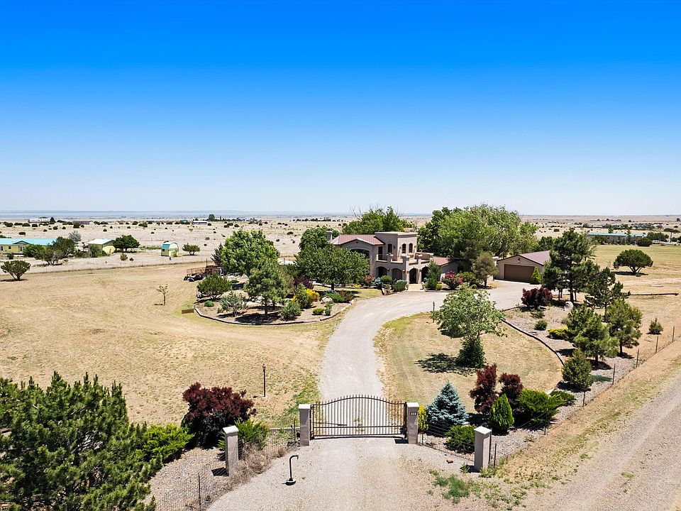 Welcome to your dream home! This elegant property features 3 indoor fireplaces, a large enclosed patio with a wood fireplace, and a fully fenced 5-acre lot adorned with mature trees and fruit. The 4-car garage, refrigerated air, and backyard pond provide convenience and serenity. Enjoy the wrap-around patio with fans and lights, electric gated entry, and the indoor wet bar with wine storage. The built-in sound system, appliances (including Sub-Zero fridge), chefs kitchen, and newer metal roof add to the allure. Experience breathtaking mountain views from this exceptional sanctuary. Welcome home!